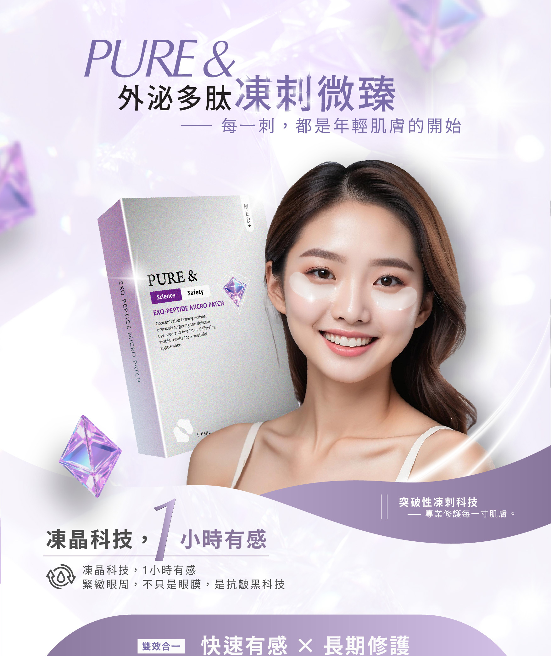【次世代凍晶微刺科技|外泌多肽深層修護因子】60 分鐘緊實拉提 Pure&外泌多肽凍刺微臻(四對/盒)